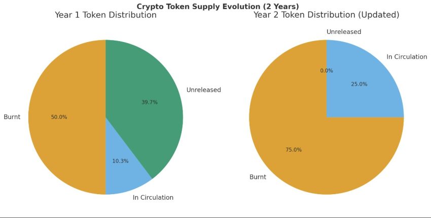 - Circulating before Year-2 burn = 103,547,309,180 + 146,452,690,820 = 250,000,000,000